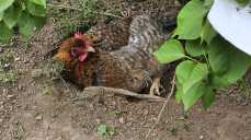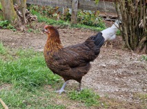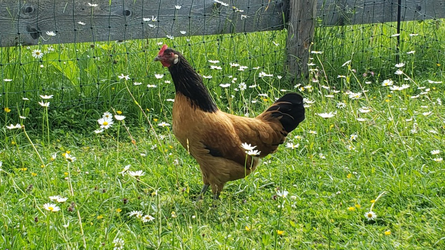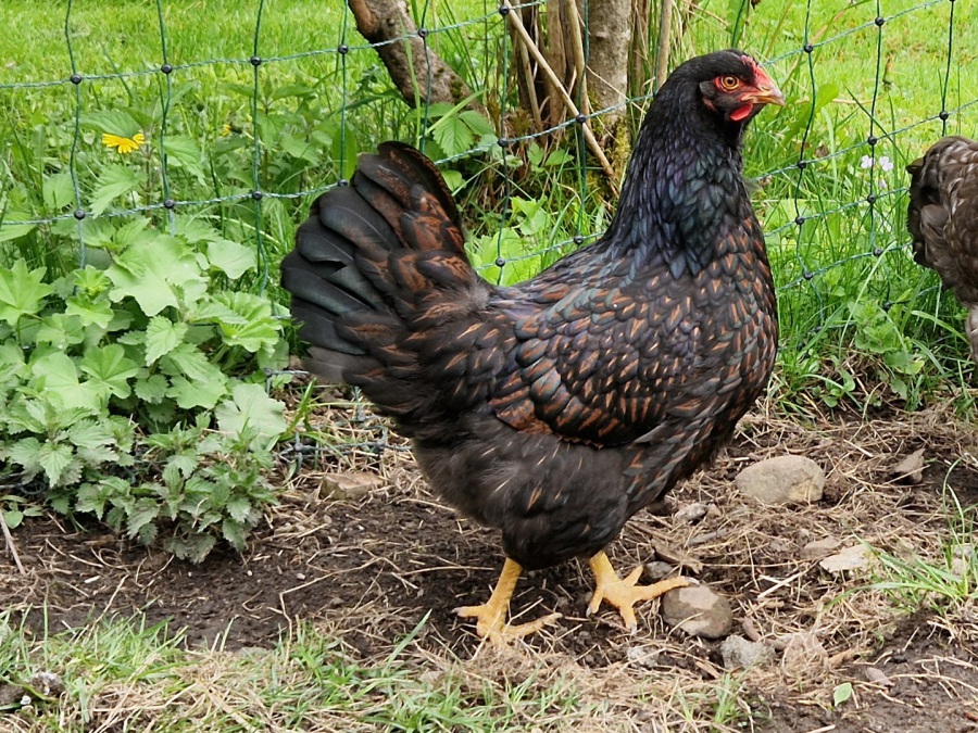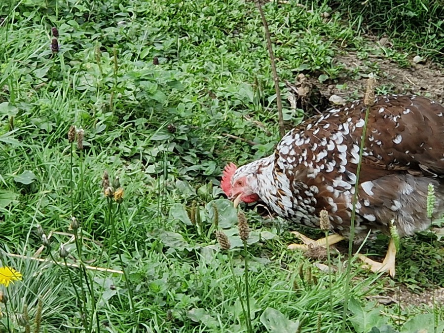 Unsere eierlegenden Damen bewohnen einen Teil unseres großen Gartens.